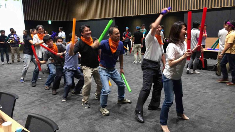 となり彼らはアドレナリンポンプの音楽を作成するようにチームを一つにするユニークな会議の緊張緩和または活性化ゲームです。このゲームは、カラフルで、ペースの速いオーケストラで、会議室を参加者みんなを熱狂で活性化します。 それはステロイドのギターヒーローのようなものです!