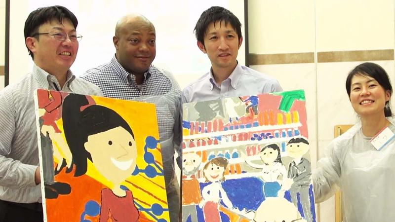 事前にゴールやビジョンやバリュー、ミッションなどをヒアリングし、専属グラフィックデザイナーがオリジナルのアートを作成します。アクティビティ当日はチームで協力し大規模なアートを再現し、自分たちの「BIG PICTURE」(物事の全体)を共有します。出来上がったアート作品を職場に持ち帰り展示することでこのアクティビティでの学びのリマインダーにもなるのです。